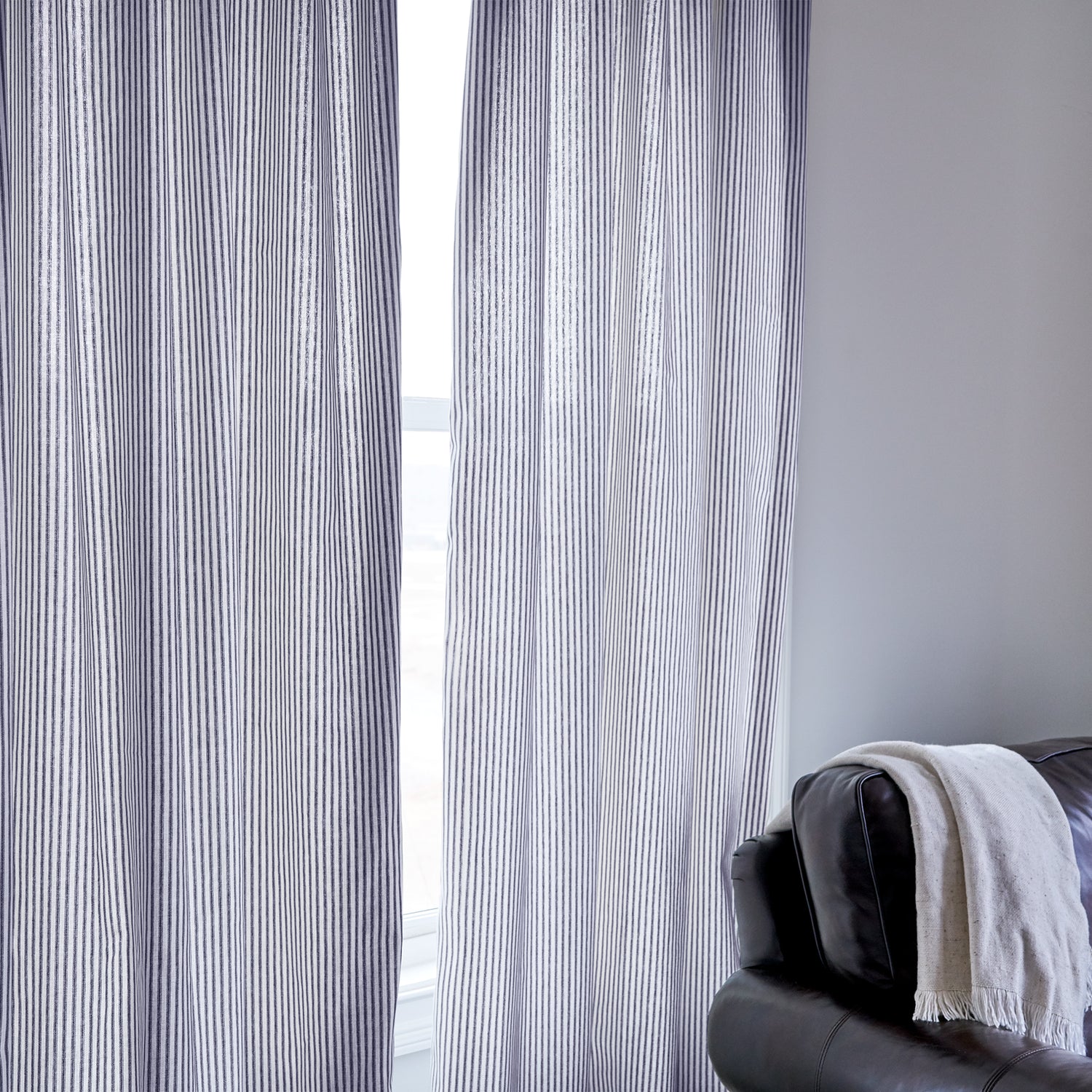 Ticking Stripe Shower Curtain Black and Cream 100% Cotton Fabric Made in USA