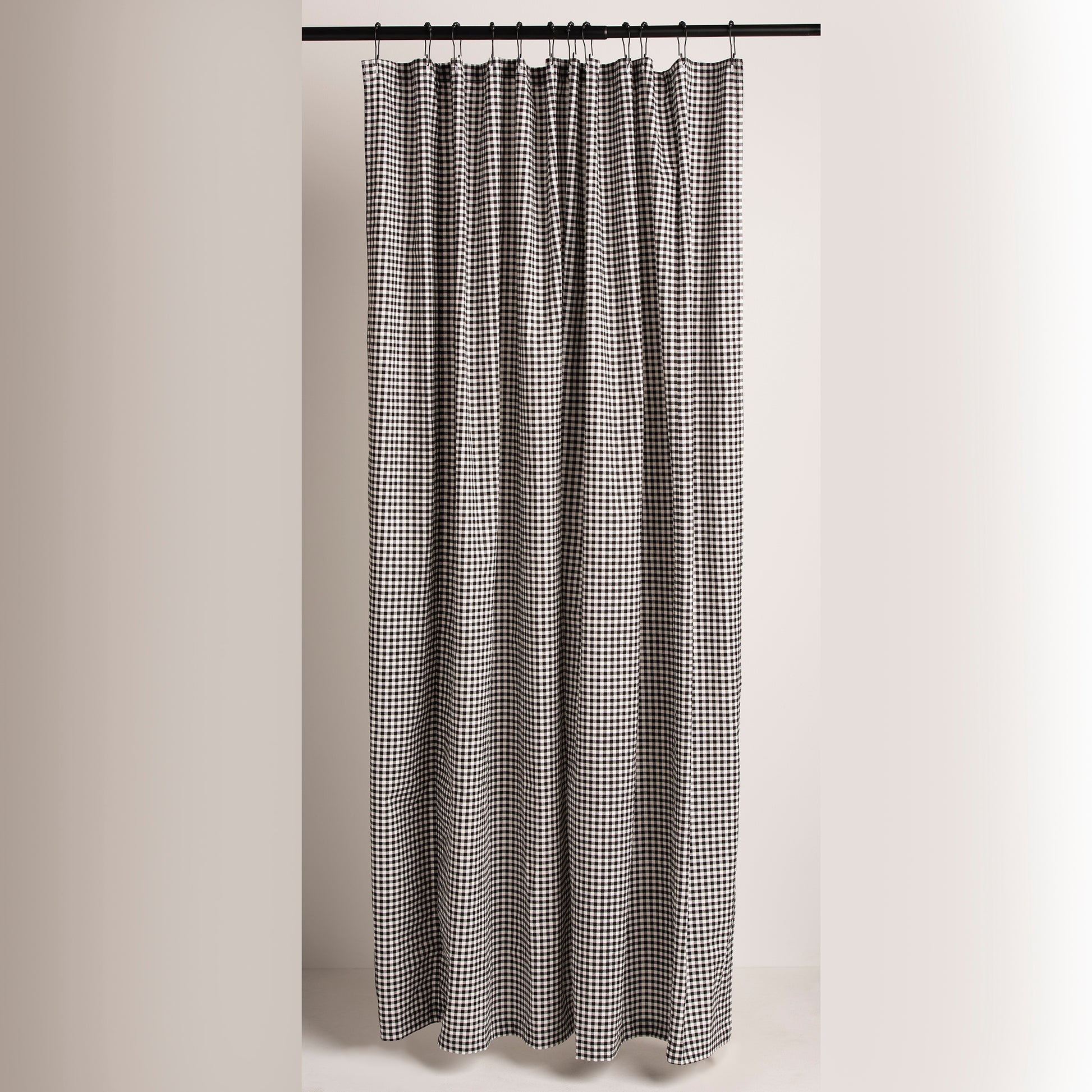 This 100% cotton fabric shower curtain is made in the USA in stock for immediate shipment ships from the Carolinas. The fashionable gingham check features black and white gingham design and provides the perfect classic understated addition to any home. The standard 72" x 72" size fits a standard shower tub combo. Also available in extra tall 72x84 and 72x96 to order made in just 1-2 weeks. and includes 12 holes for hanging. Update your cabin or lake house in an instant. Custom sizes available simply select custom deposit and enter your dimensions in notes/instructions in whole inches - pricing based on size of item, we will contact you prior to production. Tracking provided on shipment. Matching fabric and curtains are available please inquire.
