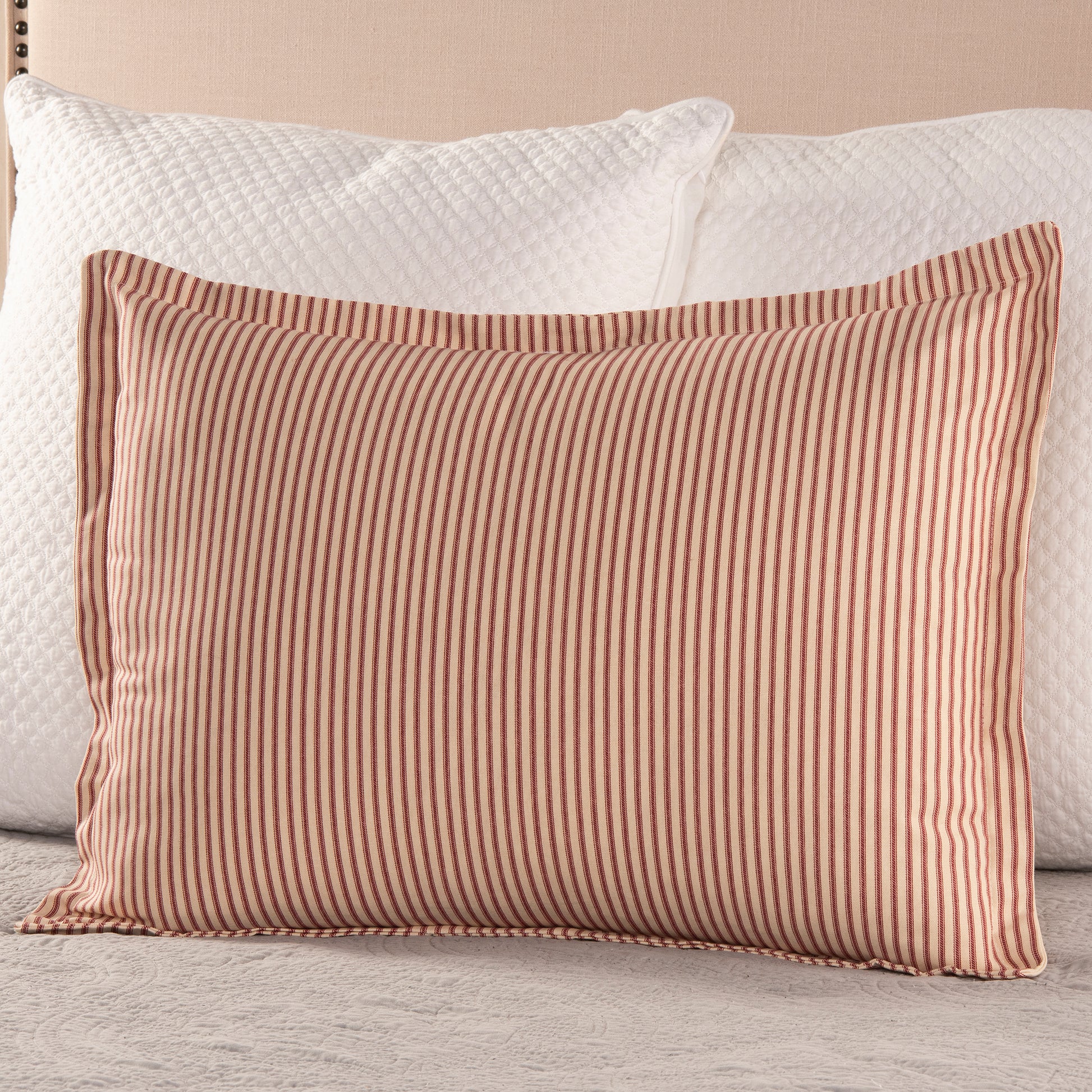 Ticking Stripe Pillow Sham Red Standard Size Flange Style